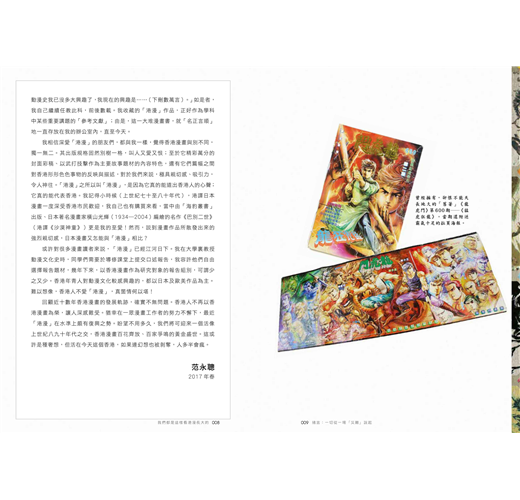 這本《我們都是這樣看港漫長大的》,書名雖然比較長,但內容很詳盡。與作者范永聰初次認識,知道他是位大學教授,但同時亦是位資深漫畫迷,小時候已開始看漫畫書,到今日為人師表;他從讀者的角度,見證香港漫畫如何「畫出彩虹」,至今天夕陽遲暮,加上我倆師兄弟的資料補充,彼此呼應,希望可豐富本書,也讓廣大港漫迷對香港漫畫歷史有更深刻了解,就正如書名一樣——我們都是這樣看港漫長大的!
