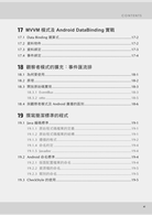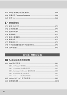 ■ 效能最佳化篇:本篇偏重介紹目前Android 平台常見的效能最佳化相關知識,主要包含程式最佳化、圖片最佳化、電量最佳化、版面配置最佳化和網路最佳化等基礎知識。