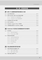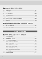 ■ 測試篇:本篇介紹了測試相關的知識,這部分是很多開發人員經常容易忽略的內容,本質上屬於測試領域,但開發人員需要有所了解,主要包含Android 單元測試、UI 自動化測試、靜態程式分析和自動化建置等工具。