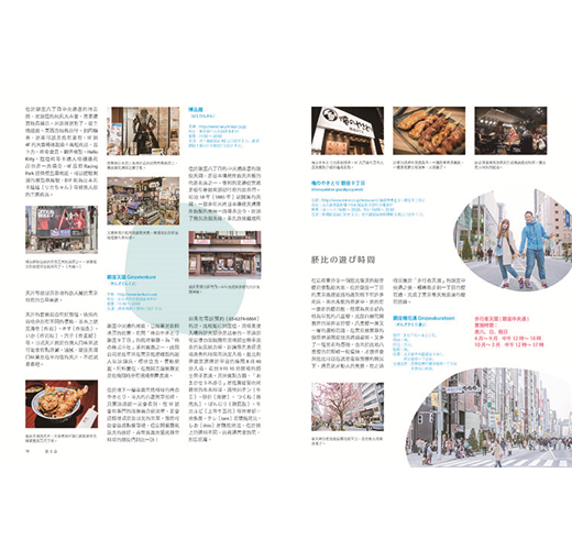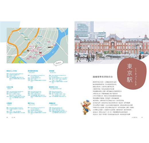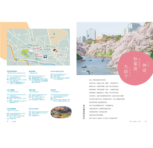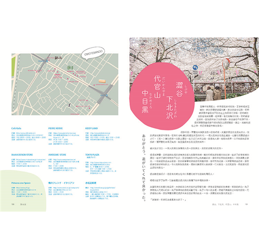 東京就像是一座彷彿永遠探索不完的城堡,當你以為這個房間、這個景點已經是心 目中最美的時候,往往坐上電車的下一站,又或是打開另外一個房間的門,你又會 看到另一種不一樣的美麗風景。有好多既新奇又有趣的店舖藏身在城市的角落裡, 等待著旅人們去發掘;更有許多值得一訪再尋的幸福小徑,等著手牽著手的戀人們 細心瀏覽,有些地方飄逸著濃郁的咖啡香、有些地方盛開著嬌豔的季節花朵、有些 地方太適合說些甜言蜜語、有些地方不知道為什麼,就是會情不自禁搭起對方的肩, 自以為是上演起日劇中的唯美情節,我想,這就是屬於東京的魅力吧。
