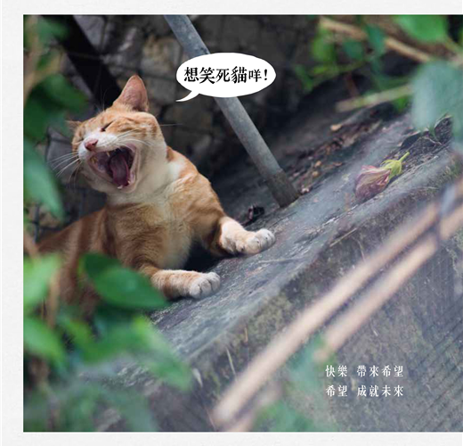 一個簡單行為,給予我很大支持。面對這份關懷,我會輕掃牠的頭,親牠一下,然後衷心說聲「謝謝」。在書中,小甜和小冰也會粉墨登場,跟其他貓老師一起,為大家治療消極情緒。