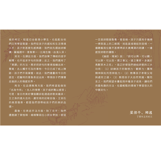 規範:收錄由香港教育局課程發展處中國語文教育組所選定的100首小學必讀古詩。