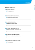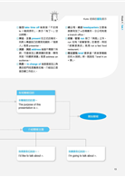 【簡報流程圖】以圖表方式彙整該堂課將學到的內容,幫助使用者快速掌握簡報各情境進行之基本程序及可套用句型,並可作為日後準備簡報的流程參考。