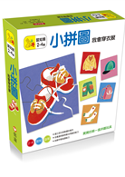 「小拼圖-我會穿衣服」是特別為2~4歲寶寶設計的拼圖遊戲,針對寶寶的能力,設計適當的片數、顏色、圖案、軋口形狀、四邊邊角,增進寶寶視覺辨識、解決問題等能力,享受拼圖遊戲的樂趣。拼圖底盤的設計,讓幼兒更好操作;六組拼圖的軋型都不同,方便幼兒在遊戲過程中自我校正。