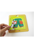 透過拼圖遊戲,能幫助孩子學會辨識圖形中部分與整體的關係,認識外套、褲子、襪子、鞋子、帽子、背包等衣物或配件,操作的過程中,還能促進小肌肉靈活發展。