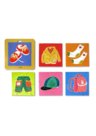 適合2~4歲寶寶的拼圖遊戲,認識外套、褲子、襪子、鞋子、帽子與背包,增進寶寶視覺辨識和解決問題的能力。