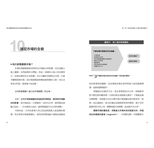 如何以自身經驗、問卷調查及訪查競爭對手,將蒐集到資訊圖表化,了解市場全貌、顧客需求、競爭力,以及能切入的市場成長區塊,找出「讓過客變粉絲」的關鍵!