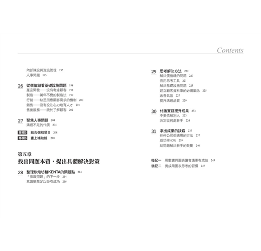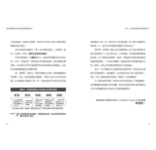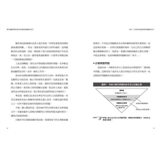 書中以一間假想麵包店,帶領讀者依循5大要點、31個步驟、67張圖表練就問題解決必備的技巧。
