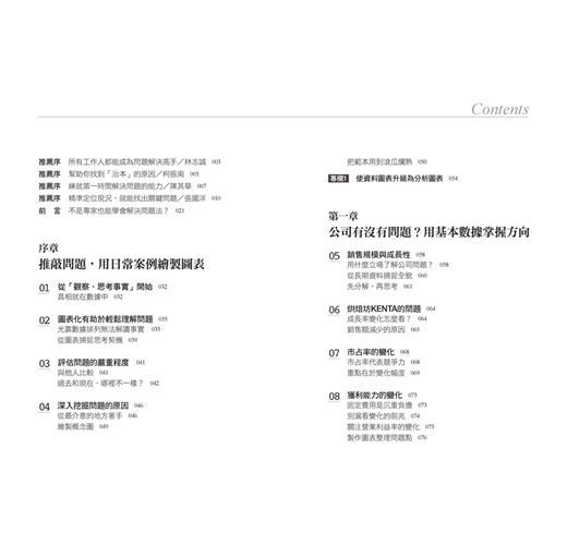 本書從實務面的案例去進行探討,可幫助讀者學到解決問題前如何釐清問題,透過蒐集、整理數據及具體意見,讓問題點更明確,然後根據掌握的事實去做分析,追查到根本的原因,如此方能提出治本的對策。