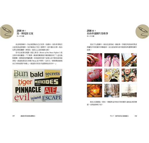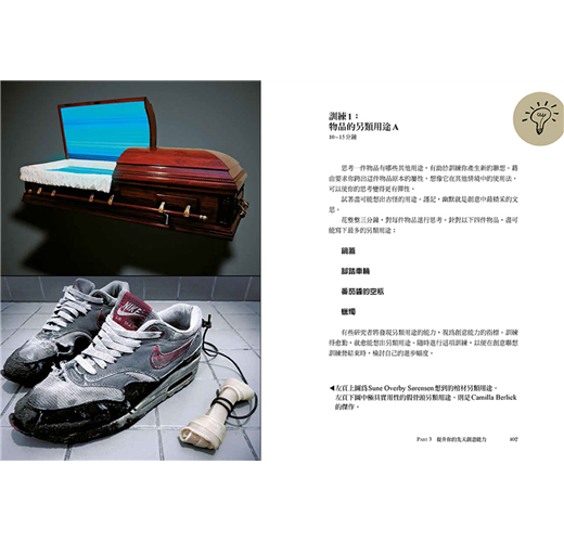 ──現在你可以捲起袖子,開始訓練發現及產生聯想的能力。先以幾個入門練習在心裡打好底,再挑戰21項有助於提升先天創意能力的練習。