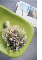 我將所有的花材,依色系與質感分門別類整理好,一束一束的立在桶裡,擺滿了整間工作室。這滿室的繽紛燦爛,著實讓人感到十分的開心。我隨意取一把花材,欣賞、端詳著,隨即觸動我的是花本身的顏色、姿態或質感,再依直覺去撿選其它的花材來作搭配。靈光乍現時,有時不到數分鐘的時間,就完成一束自己都愛不釋手的作品。