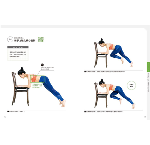 ‧窄版伏地挺身 D-3椅子之強化核心、胸肌與肱三頭肌
