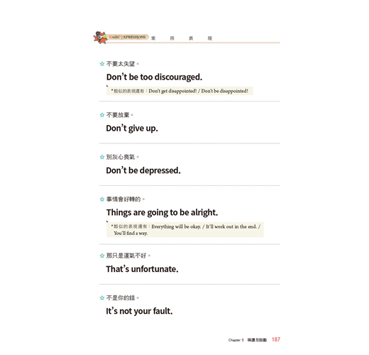 即使學了超過十年的英文都已經忘光光了也沒關係,只要國高中畢業的人都可以使用本書輕鬆學習,書中介紹的英文文法也不是為了考試,而是要讓我們在溝通時能夠更順暢自然表達自己的想法,試著能: