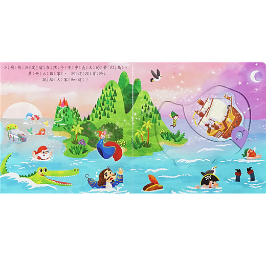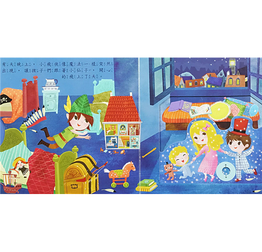 「小飛俠突然出現,讓孩子們飛上天!」可推可拉又可轉,小飛俠的故事動起來!