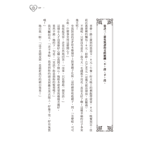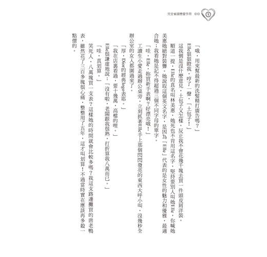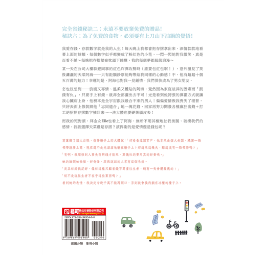 怎也沒想到──浪漫又專情、溫柔又體貼的阿海,竟然因為家庭破碎的因素而「跟錢有仇」,只要手上有錢,就非全部灑出去不可!光是看到他誇張的揮霍方式就讓我心臟病上身,他根本是全宇宙跟我最合不來的男人!偏偏愛情教我喪失了理智,只好表面上假裝跟他「志同道合」地一塊花錢,回家再努力開發各種瘋狂省錢+打工絕招把存摺數字補回來……洗大體也要硬著頭皮去!