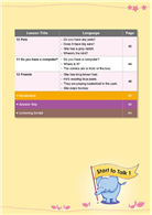 每課都由一個練習活動開始,介紹本課的句型和單字,學生也會在其後的口說練習活動中用到這些單字句型。