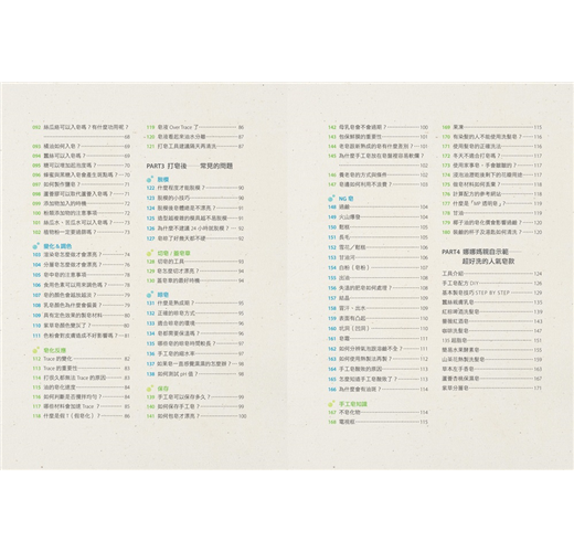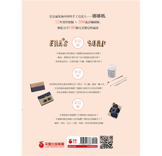 娜娜媽融合12年的做皂經驗,集結出180個最常遇到的做皂關鍵,有系統的分類方式,讓每一個想嘗試做皂的新手、或是熱愛手工皂的人,都能找到答案、做出成功好皂。