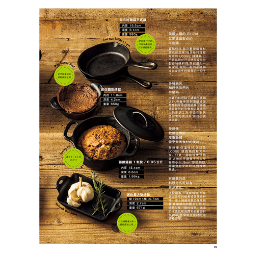 2. 台灣唯一一本全方位使用 LODGE 各種鍋型的料理書。如果您使用的是別家的單柄鑄鐵鍋,也一樣可以參考本書的內容。