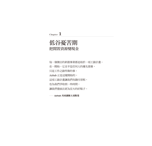 這兩家公司近乎同時誕生。Airbnb 頭一年的大部分時間只是一項工餘計畫(side project),單純只是幾位創辦人在「工作之餘」所做的事。當時許多人都認為太異想天開,一個理智的人怎麼會想睡陌生人的床?八年後,以募資評價計算,該公司值310 億美元,高於全球任何一家連鎖旅館。那些當年在華盛頓特區睡硬木地板的創辦人,每人身價為30 億美元。