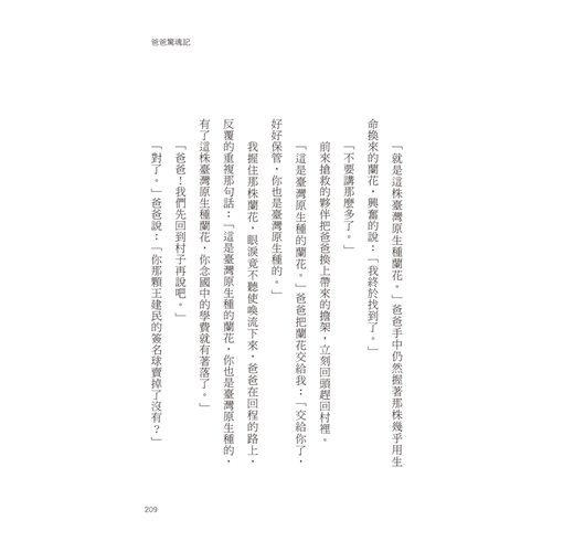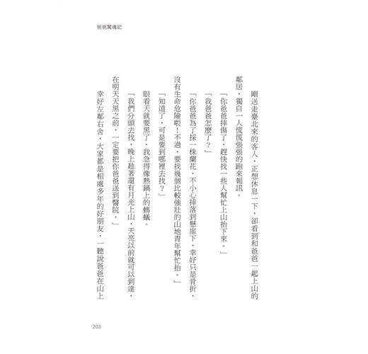 爸爸說他要和朋友到山上去,找尋珍貴的臺灣原生種蘭花和千年靈芝,只要成功了,我們就不用賣掉房子和竹林,媽媽也許會回來,只是通往司馬庫斯山區的原始山林裡有許多詭異的傳說,爸爸會成為英雄嗎?