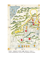 既然是一張清代的中國地圖,為何北京旁寫著「順天府」,南京則是「應天府」,這都是明代的用語。再者,圓圈紅底註明戰國時期的國家,又用小字寫下孔子、張良、東方朔、周瑜、郭子儀等歷史人物,這似乎不止是一張地圖,更像是歷史教材。在我眼中,這幅地圖呈現的是層累疊加的中國歷史,而且明顯是以朝鮮為中心出發的世界觀。