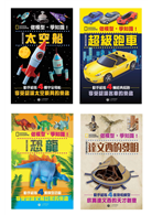 ●立體書大師大衛‧霍考克設計的紙板模型零件,讓讀者親手組裝出四款屬於自己的太空載具。