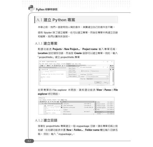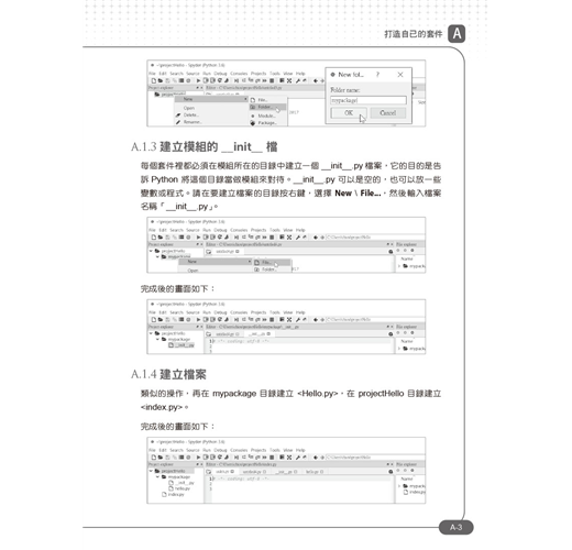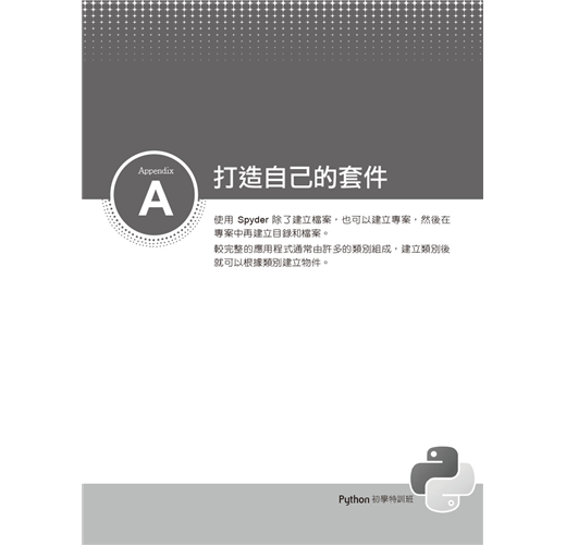 其實建立自己的套件並不難,使用Spyder除了建立檔案,也可以建立專案,然後在專案中再建立目錄和檔案。較完整的應用程式通常由許多的類別組成,建立類別後就可以根據類別建立物件。