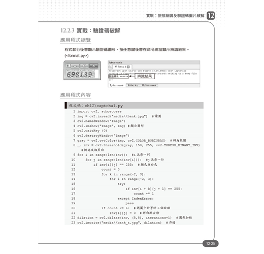 在許多網站都會利用圖形驗證碼來阻擋網站上不當或惡意的訪問動作,如果要進行驗證碼圖片破解,要將圖形驗證碼轉換為文字。Python可以透過圖形處理套件將大部分圖片背景去除,再讀取圖片文字進行破解。