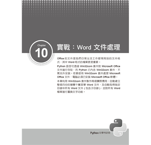 本章利用套件製作兩個實際應用:自動建立整個月份的營養午餐菜單,及自動取得指定目錄中所有Word文件(包含子目錄),並對所有Word檔案進行置換文字功能。