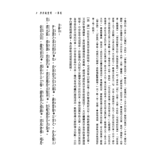 伊皇唐之革天創元1.也,我高祖乃仗大順2.,赫然雷發3.以首之。於是橫八荒,漂九陽,掃叛換,開混茫4.。景星耀而太階平5.,虹蜺滅而日月張6.。