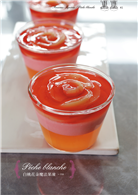 {砂糖和果汁拌勻}→{加入泡水後的吉利丁}→{加入鮮奶油攪拌一下}→{靜置冷卻形成分層}→{放入冰箱冰涼凝固}