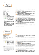 首先是較為常見的口味,如葡萄魔法果凍、可爾必思魔法果凍、白巧克力柳橙果凍等;接下來是plus單元,只要加入水果或花卉,就能變得十分華麗,如葡萄柚魔法果凍、玫瑰花魔法果凍等;在第三篇介紹可當作前菜冷盤的魔法果凍,如彩色蔬菜魔法果凍、火腿花椰菜磚石風魔法果凍等;第四篇則介紹讓人移不開眼睛的泡泡果凍,如香檳魔法果凍、奶昔魔法果凍等;第五篇是以「淡雪羊羹」為靈感,創造出的淡雪魔法果凍,有柚子、奇異果、藍莓等口味,內容非常豐富,請好好享受這奇妙的視覺口感雙重奏吧!