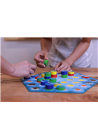 三種不同高度的木製螃蟹棋子,搭配海灘情境設計的遊戲底板,規則簡單、趣味十足!