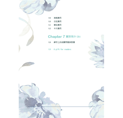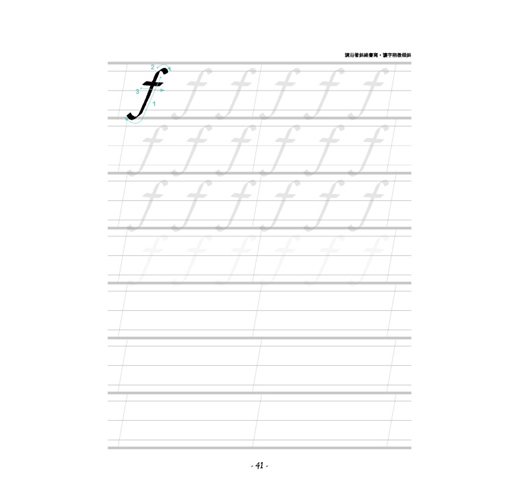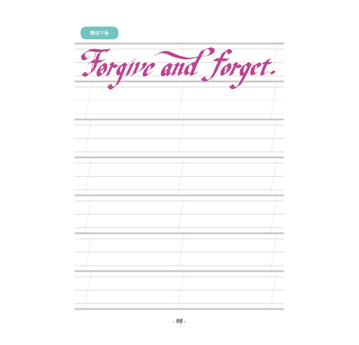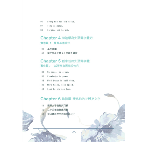 本書於最後一章節特別收錄,針對初學者會遇到的需求設計迷你的尺寸讓讀者隨處帶著練,希望大家都能更進一步的朝寫出漂亮的花體英文字前進!