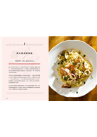 這本書簡潔的說明了書中每道義大利料理的區域與典故,並以最基礎的義大利料理製作技巧為主結構,從前菜與沙拉、第一道主餐(麵與燉飯)、第二道主餐(海鮮與肉類)到甜點共有63道美味的料理,使用的也是淺顯易懂的說明方式。