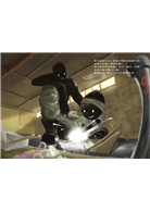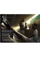 白天的黑孩子,在學校裡是被扣水桶、遭同學恥笑圍攻的對象。黑孩子哥哥以拳頭保護自己與弟妹,日復一日將自己武裝起來。晚上的光景,則是穿過米酒瓶的透視,看到蜷縮在床上的黑孩子;而父親像一團狂怒烈火,席捲稚弱的孩子;哥哥總是擋在弟弟面前,去承受那酒醉大人的拳來腳去。繪者的寫實手法,震撼人心。