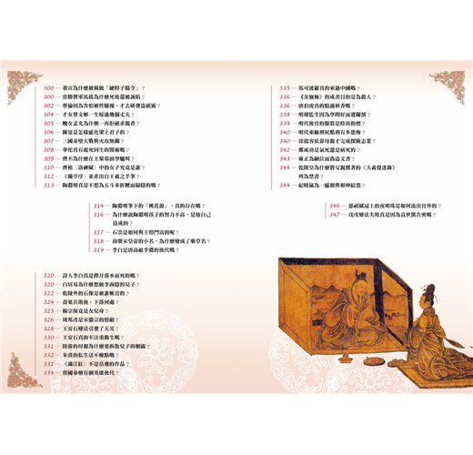 在「正史未載的祕聞軼事」部分中,則是記錄探究了不為人知的名人軼事,如韓非真是被李斯害死的嗎?馬可波羅真的來過中國嗎?還有,司馬相如的大名氣,竟是被刻意包裝出來的等。
