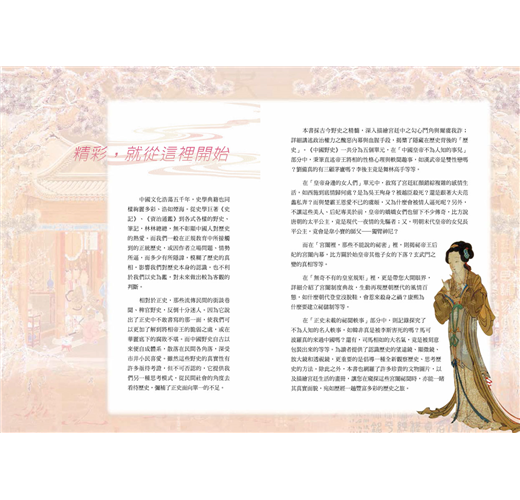 本書網羅了許多珍貴的文物圖片,以及描繪宮廷生活的畫冊,讓您在窺探這些宮闈祕聞時,亦能一睹其真實面貌,宛如歷經一趟豐富多彩的歷史之旅。