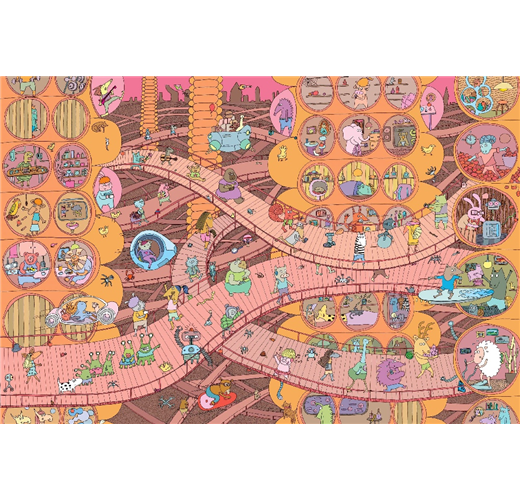 這套繪本出自暢銷書《地圖》作者之手,其擅長描繪細節豐富的全景圖畫式的生活百科,在《奇幻小鎮大發現》中,他們更將這個視覺敘事能力發揮極致,書中包含了100個角色,精心設計單個角色故事、角色與角色互動故事、每一冊的敘事主線與副線,再加上三冊可以一起閱讀,點、線、面的涵蓋範圍極廣,共可發掘出超過100個故事,每一次翻閱都可以勾動讀者好奇心,怎麼也看不膩。