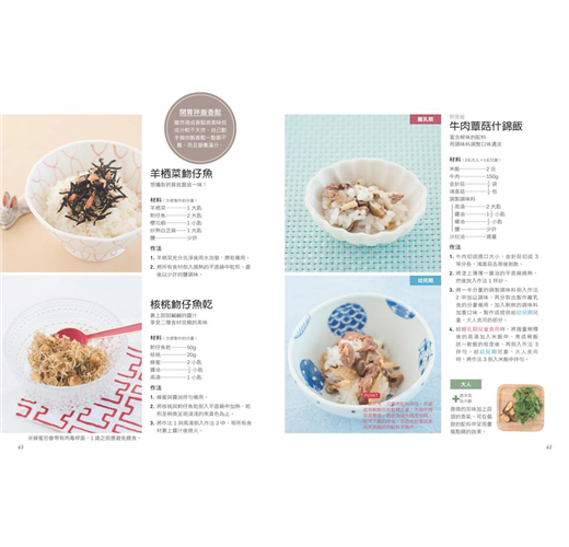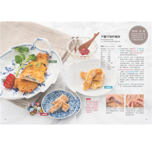 ※「親子分食料理」料理超便利───食譜採分食模式,其中依離乳期及幼兒期調整切法,大人可在最後步驟配合個人喜好添加食材,家長不僅能輕鬆料理,同時能讓寶寶攝取到營養均衡的餐點。