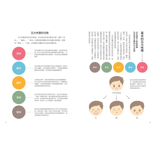 調查發現,有高達三成六孩子沒有天天攝取蔬菜,高達四成六孩子每周吃油炸食物一次以上,有三成學童「吃不出味道」,無法辨識出酸甜苦辣,把酸味當苦味等,孩子的偏食狀況令不少父母憂心,長期下來養成重口味,體重也直線上升。因此,本書特別針對0~5歲幼童設計「味覺平衡訓練法」專書,為主婦們解決各種餵養孩子的困擾及焦慮。