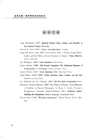 西方社會從亞里斯多德開始,便經常將女性身體比喻為「傷殘的男性」(mutilated males),認為女性身體和失能身體都是次等於男性的身體(Garland-Thomson, 2001; Kudlick, 2003)。女性主義者也經常運用這類的比喻,來強調自身所受的社會壓迫,將性別歧視的社會視為是一種「致殘」(disabling)的制度。認為主宰性別權力關係的是父權體系,而主宰著障礙歧視的是「能者/失能」(ability/disability)系統,兩個系統同時運作,造成失能/性別重疊或雙重歧視的問題。而且,兩...