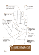 健康亮紅燈時,手部即會馬上反應!仔細觀察手部是否符合健康標準,並以健康的雙手為目標,改善不足處,即能讓身體邁向健康之路。