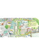 黃色車身的「循環電車」,在書裡熱鬧的畫面中,非常醒目,可以馬上被發現,車站、公車的站牌和電車一樣都是黃色的。車站與車站之間,來來往往的公車去向也很引人注意。請享受這趟愉快的旅行吧!