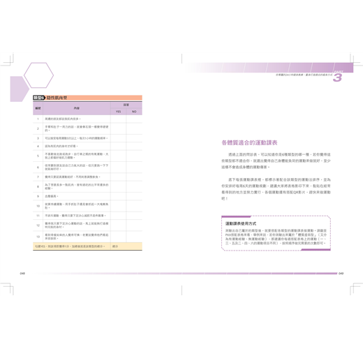 ★特色3:你是哪一種體質?利用表格診斷出適合自己的運動方式