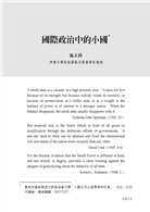 由歷史看來,小國宛如風中的菅芒,即使有時必須隨風搖擺,卻未必注定會被吞噬。在瞬息萬變的環境中面對挑戰,小國有見機行事的空間,如何透過結盟,在非軍事議題積極扮演遊說、協調及規範倡議者的角色,發揮本身的實力、將自己變成巧國,並非只有聽天由命、任人制約一途。
