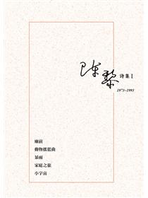 陳黎詩集Ⅰ:1973-1993 合陳黎前五本詩集《廟前》、《動物搖籃曲》、《小丑畢費的戀歌》、《家庭之旅》、《小宇宙》於一帙,校正修訂,收詩兩百八十餘首,是其寫詩第一個二十年間作品的總集。書末並附原有之後記、跋、序,及評論、註釋。