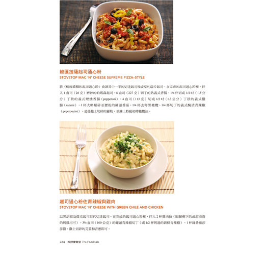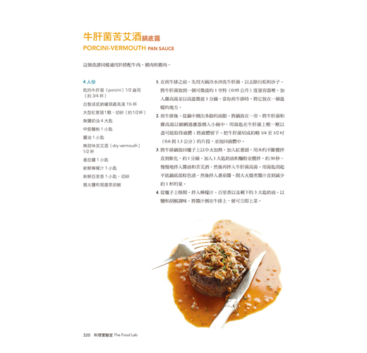 經營知名美食網站SeriousEats.com的作者將美食背後的科學現象,徹底發揮理科男的求知精神,一一將其實驗的過程與結果,以食材及烹飪法區分為以下9大類,而書中的300道食譜更是經過他不斷嘗試而來的最佳比例。