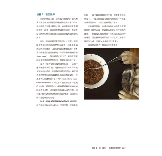 因此,在餐廳工作八年後,我決定跳脫已經熟悉的軌道──或許能透過研發食譜,在出版的領域找到我要的答案。在做了這項新嘗試後,好奇心開始能被滿足了。身為《圖解廚藝》(Cook’s Illustrated)雜誌的示範廚師與編輯,我不僅得到找出答案的機會,而且還能領到薪水!終於,有個工作能結合我四項最愛中的前三項:品嚐美食、以科學的方法求取新知、下廚(我的太太是第四項),這個經驗真是讓我鬆了一口氣。我發現在大多數的情況下,即使在世界上最頂尖的餐廳──傳授給我們傳統烹飪的方法不僅過時,有時還大錯特錯。