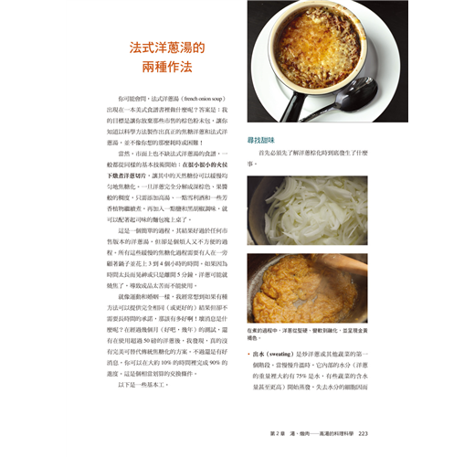 超過10項的廚藝觀念──包括握刀、濕醃與乾醃、沸水對料理的影響、攪拌機為何要從低速到高速、鮮味與味精的原理等等。